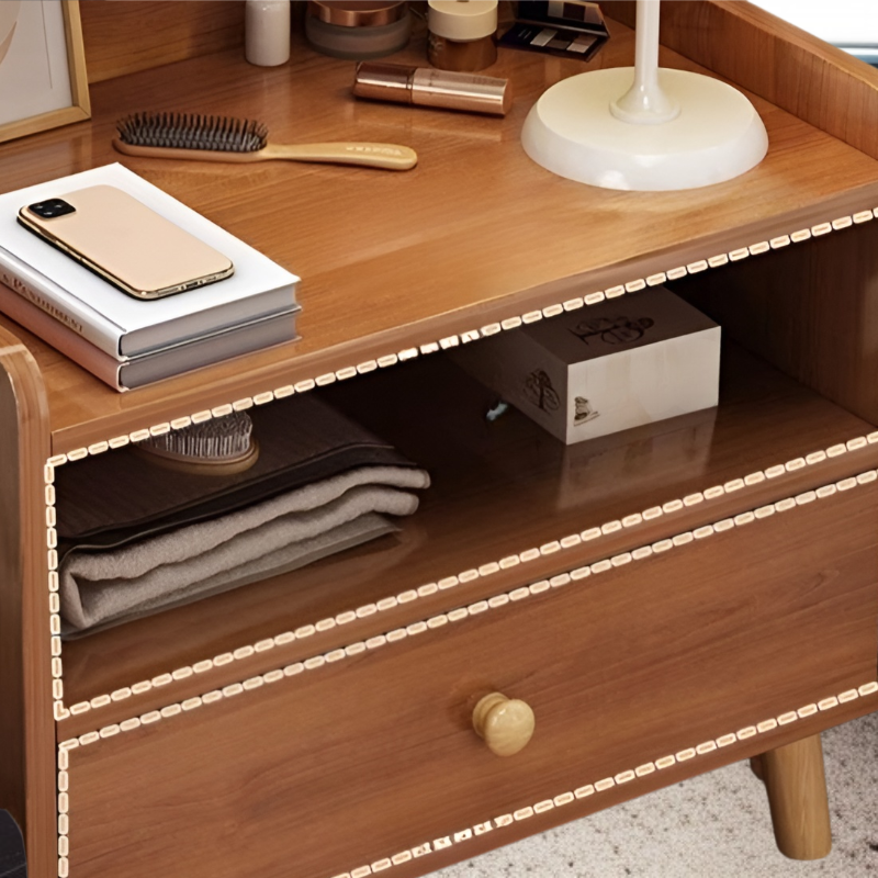 ● コンパクトサイズながらも収納力抜群で、リモコンや本、スマホなどの小物をすっきり整理でき、ベッド周りを快適に保てます。