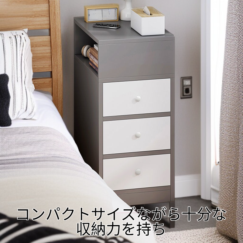 寝室リビング兼用小型ベッドサイドキャビネット 収納引き出し付き